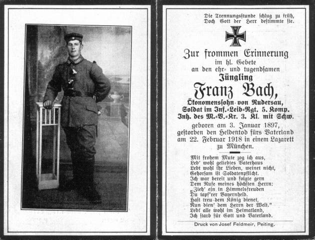 Binz geb.: 03.01.1897 gef.: 22.02.1918 Lazarett, München