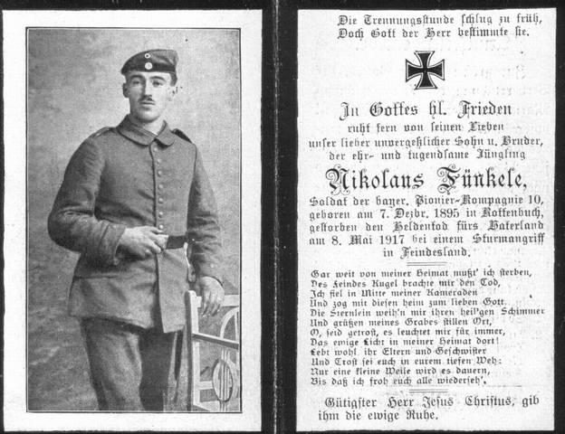 Nikolaus Fünkele - Dewald geb.: 07.12.1895, Rottenbuch gef.: 08.05.1917, (Frankreich) Grabstätte: Neuville-Saint-Vaast (Block 18, Grab 691)