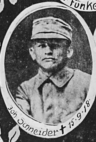 Johann Schneider geb.: gef.: 15.09.1918, (Nord-Frankreich) Grabstätte: Selvigny (Block 1, Grab 390)