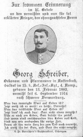Georg Schreiber - Pfarrmesner geb.: 13.02.1883 verm.: 06.09.1914