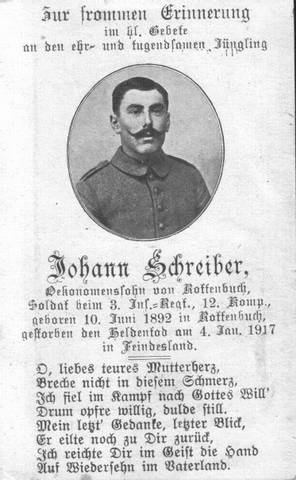 Johann Schreiber - Lang geb.: 10.06.1892, Rottenbuch gef.: 04.01.1917 Grabstätte: ?