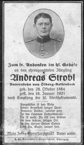 Andreas Strobl geb.: 28.10.1884 gef.: 16.01.1921, Rottenbuch Grabstätte: Rottenbuch