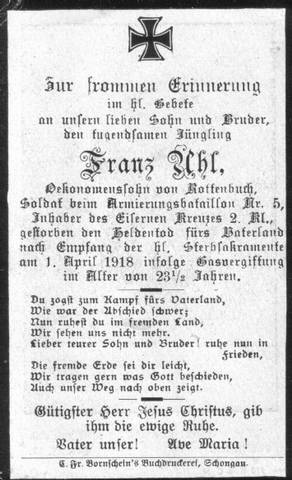 Franz Uhl geb.: 1894 gef.: 01.04.1918, (Nord-Frankreich) Grabstätte: Carvin (Block 3, Grab 985)