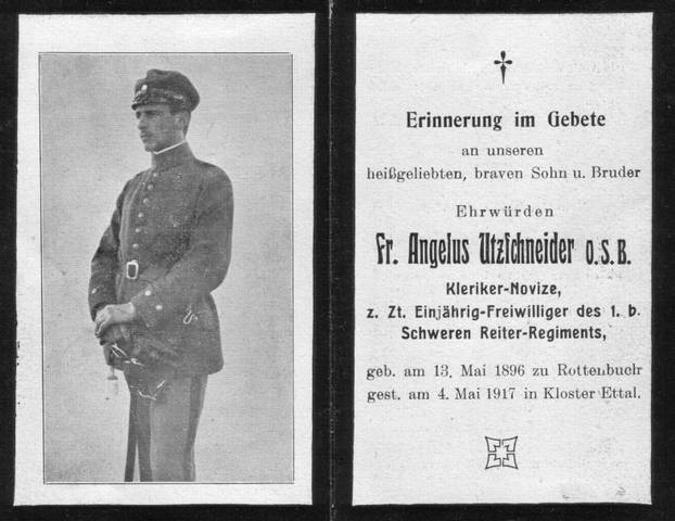 Fr. Angelus Utzschneider O.S.B. geb.: 13.05.1896 - Rottenbuch gef.: 04.05.1917 - Kloster Ettal Grabstätte: ?