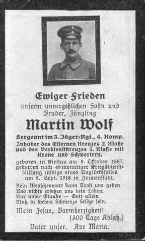 Martin Wolf geb.: 09.10.1887 - Kinsau gef.: 08.09.1918 - Immenstadt Grabstätte: ?
