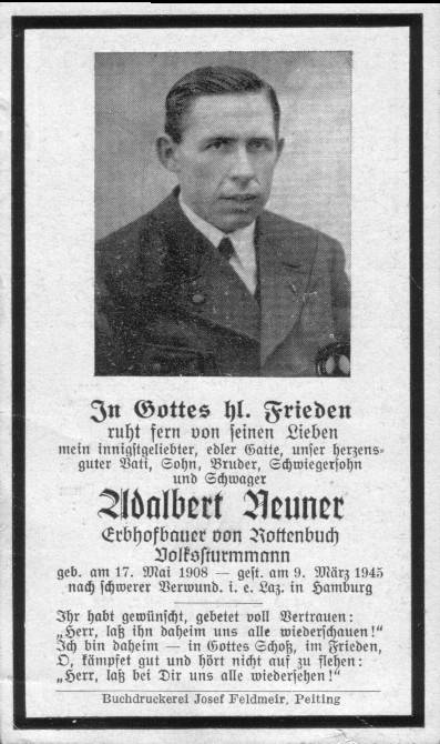 Adalbert Neuner geb.: 17.05.1908 gef.: 09.03.1945, Lazarett (Hamburg) Grabstätte: Hamburg-Ohlsdorf (Block Y43, Grab 130)